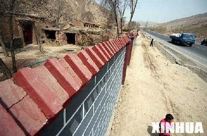 甘肃永靖竖起两公里文化墙遮掩农村贫困,当地政府为了面子特意修了这面遮羞墙。